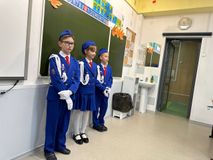 В честь их замечательных побед всей этой дружной команде из 4-го Е класса была пошита особая синяя форма с аксельбантами и белыми перчатками! Вот имена наших юных инспекторов, которые на протяжении нескольких лет самоотверженно несут для своих сверстников знания о правилах правильного поведения на дорогах: Глед Недуруев, Елизавета Лайко, Олег Измер и ещё одна Елизавета по фамилии Даниловская!