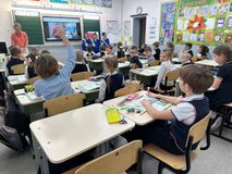 Сегодня лицейская команда юных инспекторов движения (отряд ЮИД) выступила перед первоклассниками и учениками ещё двух 4-х классов с собственной программой безопасного поведения на дорогах.