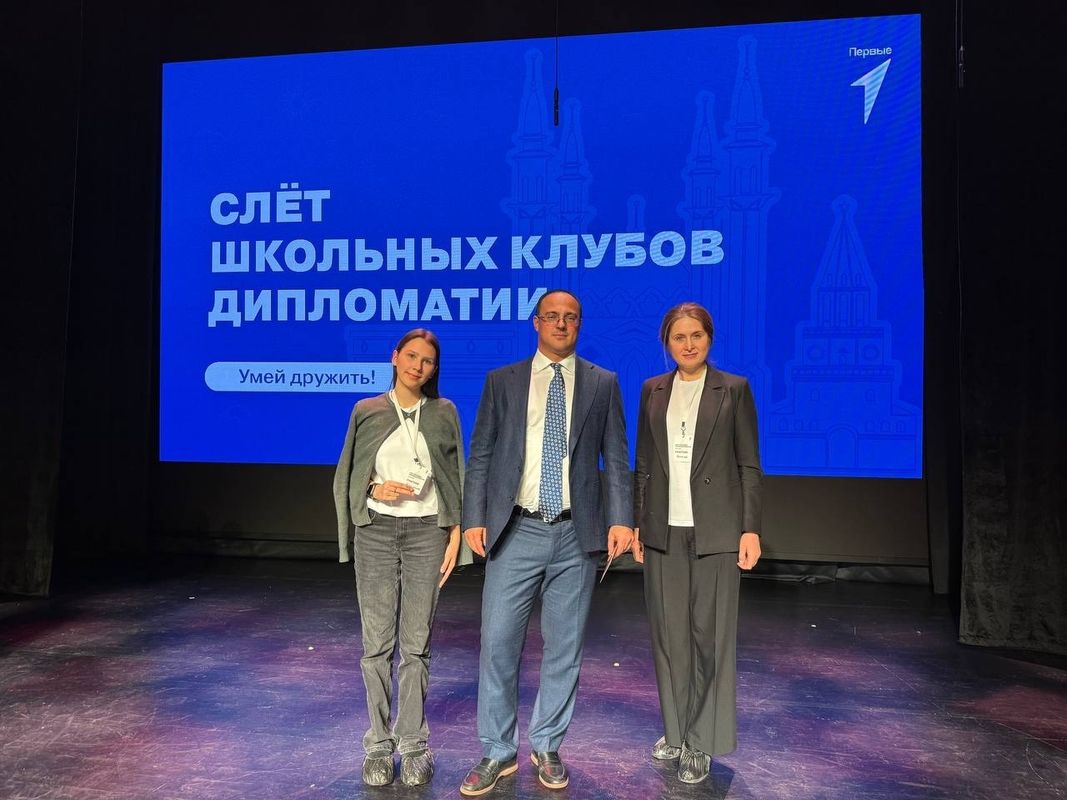 В Казани завершился Слёт школьных клубов дипломатии. Слёт собрал 200 участников и наставников из 40 регионов. Среди которых наши учащиеся 11 класса Первых: Анохина Варвара, Яковлева Кристина и Агеева Василиса, под руководством наставника - Натальи Петровны Таюрской