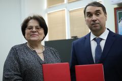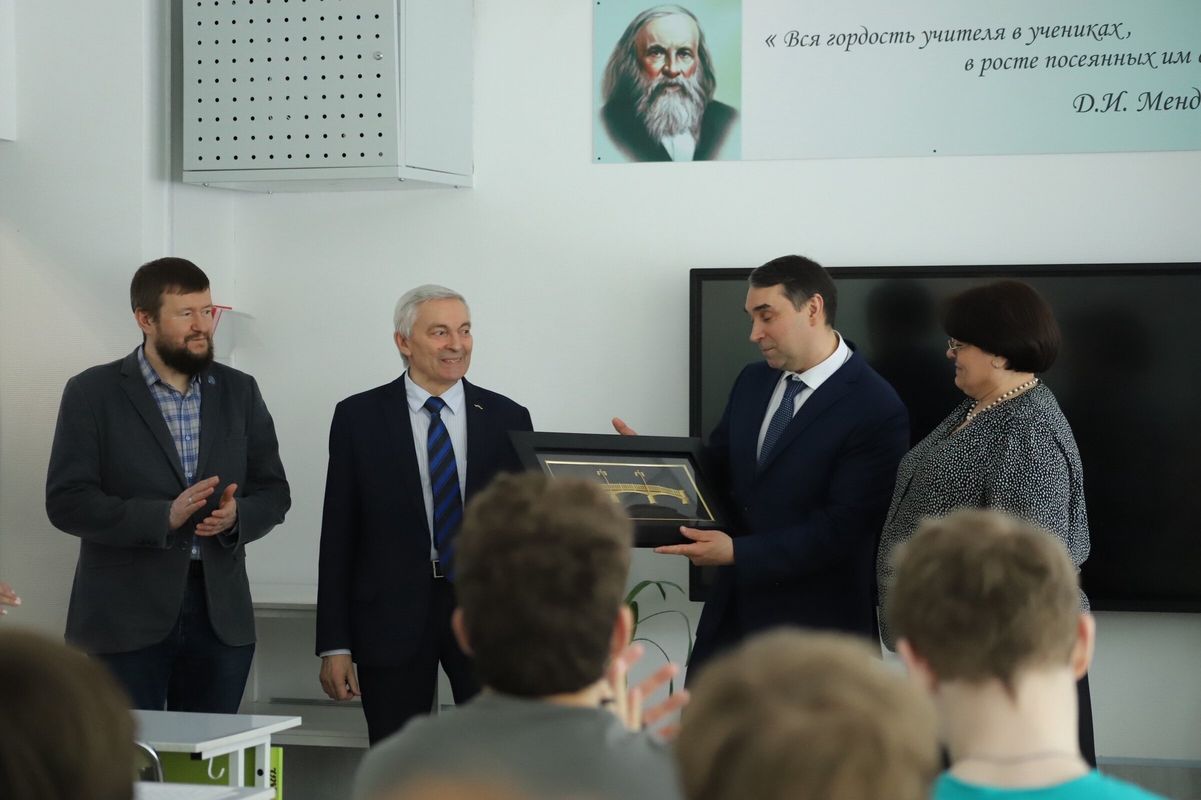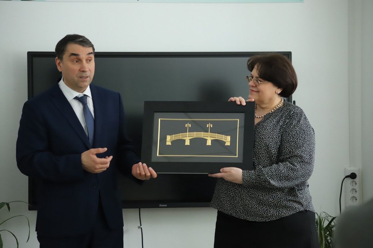 По завершению был подписан договор о сотрудничестве. На память лицею подарена картина с изображением моста.